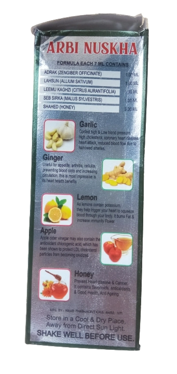 💥عربی نسخہ ادرک، لہسن، لیموں کے عرقیات💦 اور سیب کے سرکہ و شہد سے مرکب ایک ایسا آمیزہ🥃 ہے,👈 جو بلڈپریشر کو درست رکھتا ہے ،دل❤ کی نسوں کو کھولتا ہے،آنتوں کو طاقت🐎 دیتا ہے ،جوڑوں کو مضبوط کرتا ہے ،اور درد کو کم کرتا ہے،خون کو پتلا کرتا ہے،چربی کو پگھلاتا ہے,سینے کے جلن🔥 کو دور کرتا ہے۔ نیز دل کے دیگر امراض کیلئے بے حد مفید ہے🌹..